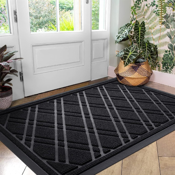 Dirt Trapper Non-Slip Rubber Backing Waterproof Geometric Entrance Rug Doormat for Outdoor and Indoor